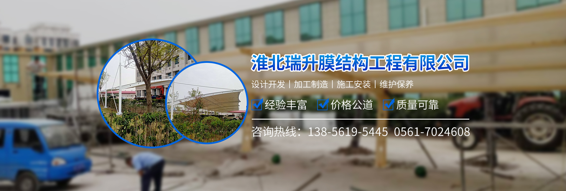 淮北瑞升膜結構工程有限公司長期積力于膜結構工程施工,鋼結構建設工程專業施工,園林綠化工程施工,地基與基礎建設工程專業施工,廣告宣傳欄制造及安裝,LED亮化工程施工,建筑防水保溫防腐工程施工,土石方工程施工,道路工程施工,橋梁工程施工;建材、五金、電線電纜、日用百貨、照明燈具、辦公用品、電子產品、停車棚、雨篷、遮陽篷、不銹鋼制品的批發兼零售;建筑工程機械設備租賃。公司位于濉溪縣百善鎮政府西150米路南交通便利。